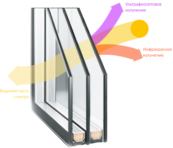 Новое поколение стеклопакетов, позволяющее экономить почти в два раза больше тепла, чем обычные двухкамерные аналоги. Напыление ионов серебра препятствует прохождению вредного спектра солнечного излучения. Заполнение внутренних камер инертным газом улучшает звукоизоляцию.