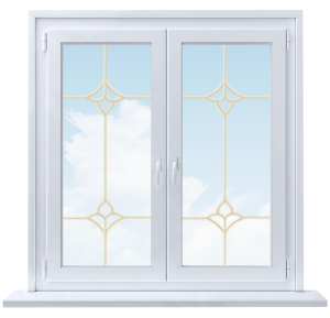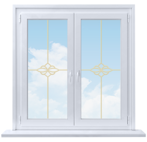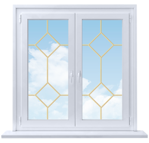 Для эффектной стилизации больших или геометрически сложных окон применяется декоративная раскладка в виде рамки из тонких прямых полос с узорами или без них. Раскладка монтируется внутрь стеклопакета на этапе его производства, что обеспечивает сохранность ее исходного внешнего вида на весь срок эксплуатации окна. Раскладка может быть ламинированной специальными пленками по предлагаемой цветовой шкале. Грамотно подобранные по форме и цвету раскладки способны превратить простое прямоугольное окно в самостоятельный элемент дизайна, а помещенные внутрь трапецеидальных или арочных окон делают их настоящими архитектурными шедеврами.